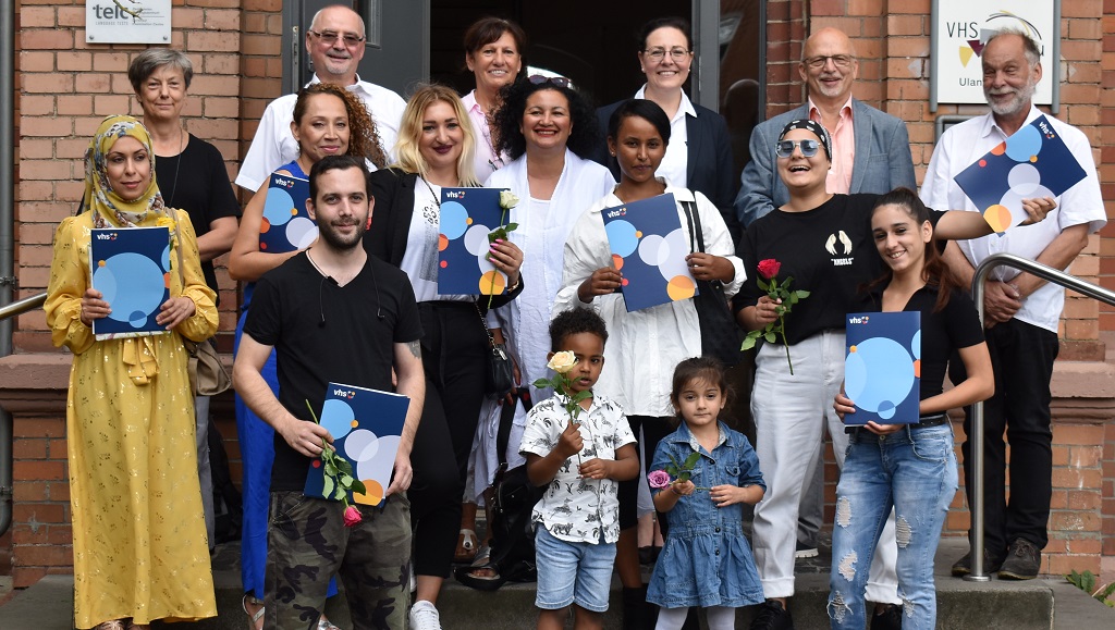 Mit dem geflügelten Satz „Ich hab‘s gewagt“ des in Schlüchtern geborenen Humanisten und Reichsritters Ulrich von Hutten leitete Beate Langhammer, Vorstandsvorsitzende des Kommunalen Centers für Arbeit (KCA), ihr Grußwort ein. Dieses richtete sie an die Absolvent*innen eines anderthalbjährigen Hauptschulabschluss-Kurses in Teilzeit bei der Volkshochschule (vhs) Hanau. Beide Häuser arbeiten bereits seit vier Jahren erfolgreich zusammen. Ein Umstand, für den auch Hanaus Bürgermeister Axel Weiss-Thiel lobende Worte fand, der es sich ebenfalls nicht nehmen ließ, den Teilnehmenden persönlich zu gratulieren. Ein Wagnis sei eine gefährliche Handlung, bei der man bewusst ein Risiko eingehe, um etwas zu erreichen, zitierte Langhammer eine gängige Definition. Insofern könne das Unterfangen der Teilnehmenden, sich auf den Schulabschluss auf dem zweiten Bildungsweg einzulassen, als Wagnis im besten Sinne bezeichnet werden.