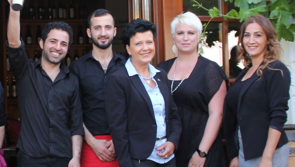 Rothmann´s Grill & Wine hat sich seit seiner Eröffnung im Mai 2015 mit der Kombination von rustikalem Chic und gehobener Grillküche als exklusive Adresse am Maintaler Bootshafen etabliert. Allerdings waren die Fußstapfen auch groß, denn an gleicher Stelle residierte jahrzehntelang das Sterne-Restaurant Hessler. Dass es bei Rothmann´s aber nicht nur darum geht, die anspruchsvolle Kundschaft kulinarisch zu verwöhnen, sondern zusätzlich einen sozialen Beitrag zu leisten, belegt das Engagement für Flüchtlinge. Geschäftsführerin Hanimi Seyitoglu kam selbst als Kind nach Deutschland. Daher war sie auch offen, als das Jobcenter des Kommunalen Centers für Arbeit (KCA) ihr vorschlug jungen Flüchtlingen eine Chance zu geben. Das KCA fährt an seinem Maintaler Standort ein Projekt für anerkannte Asylberechtigte, die unter 35 Jahre alt sind. Ziel bei „Fit für die Ausbildung“ ist es, diese Personengruppe in hoher Intensität persönlich zu beraten und ihnen einen Zugang zum Arbeitsmarkt zu erschließen – zum Teil finanziert durch Mittel des Europäischen Sozialfonds. Einer der Projektteilnehmer ist Mohamed Baker. Der Kurde Baker blickt auf eine spannende berufliche Laufbahn in seiner Heimat zurück. Zehn Jahre lang war er Mitglied der syrischen Fußball-Nationalmannschaft. Nach seiner Flucht schlug er sich mit verschiedenen Aushilfsjobs in Küchen und Imbissen durch, dabei ist er eigentlich gelernter Barkeeper. Ein Talent, welchem ihm bei Rothmann´s einen festen Platz in der Belegschaft gesichert hat. Seine Chefin, die aus dem türkischen Teil Kurdistans stammt, legt großen Wert darauf, dass er und seine ebenfalls kurdisch stämmigen Kollegen konsequent deutsch am Arbeitsplatz sprechen. „Nur in der größten Hektik oder wenn Missverständnisse drohen, mache ich eine Ansage auf Kurdisch“ so Seyitoglu. Die Regeln sind streng: Wer nicht gut deutsch spricht und versteht, darf nicht in den direkten Kontakt zum Gast treten. „Arbeitgeber wie Frau Seyitoglu sind für uns ein Sechser im Lotto“, freut sich Erika Kollmann, vom KCA-Jobcenter. „Sie ist kulturell aufgeschlossen aber setzt auch resolut Grenzen und nur so kann Integration funktionieren.“