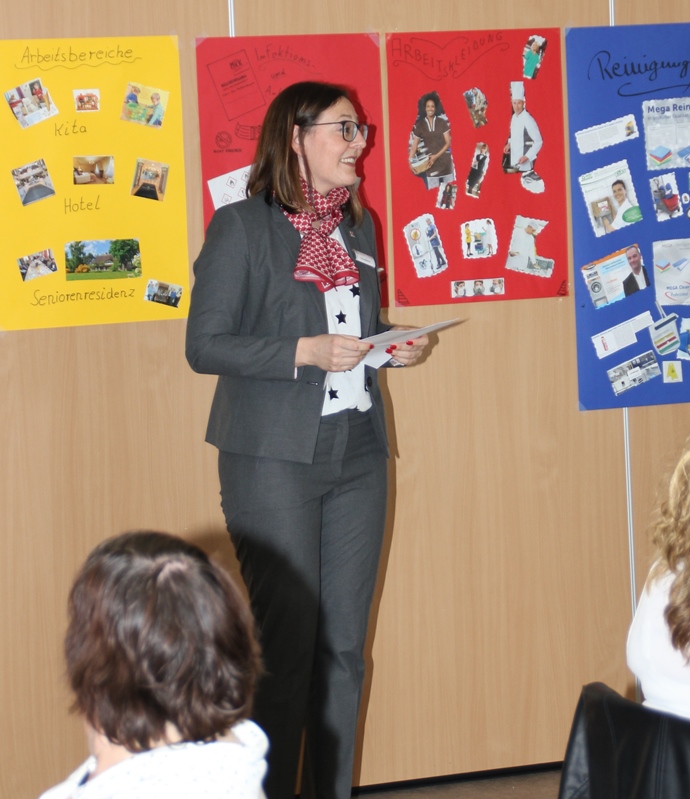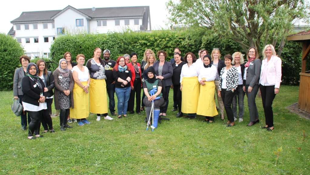 Der Anlass: Mit Hilfe seines ebenfalls kreiseigenen Trägers der Gemeinnützigen Gesellschaft für Arbeit, Qualifizierung und Ausbildung (AQA GmbH) hatte das Jobcenter im Verbund mit DEHOGA Hessen sowie dem Bildungswerk Hausfrauen-Bund Hessen e.V. die Qualifizierung von rund 30 arbeitsuchenden Frauen und Männern zu angelernten Fachkräften initiiert. In zwei unterschiedlichen Schwerpunktkursen befassten sich die Teilnehmenden innerhalb von sechs Wochen wahlweise mit den Grundlagen des Housekeepings oder mit dem Themenfeld Service / Küchenhilfe. Mit großer Begeisterung präsentierten die Absolventen, was sie gelernt hatten. So begrüßten die Servicekräfte alle Gäste persönlich am Eingang. Die Küchenhelfer hatten ein schmackhaftes Buffet vorbereitet und die Teilnehmerinnen aus dem Housekeeping erläuterten anschaulich ihre Schulungsinhalte. Alle Offiziellen zeigten sich voll des Lobs, neben der KCA-Verwaltungsratsvorsitzenden Simmler, war dies unter anderem als Einladende Beate Langhammer, Stellvertretender Vorstand des KCA-Jobcenters, die hervorhob: „Qualifizierung bei der Optionskommune Main-Kinzig-Kreis gelingt, weil hier – wie bei vielen anderen Projekten – das KCA-Jobcenter sowie die AQA als Maßnahme-Träger zielgerichtet, partnerschaftlich und erfolgreich – in diesem Fall ergänzt durch die Fachexperten von DEHOGA und dem Bildungswerk Hausfrauen-Bund Hessen – zusammenarbeiten.“