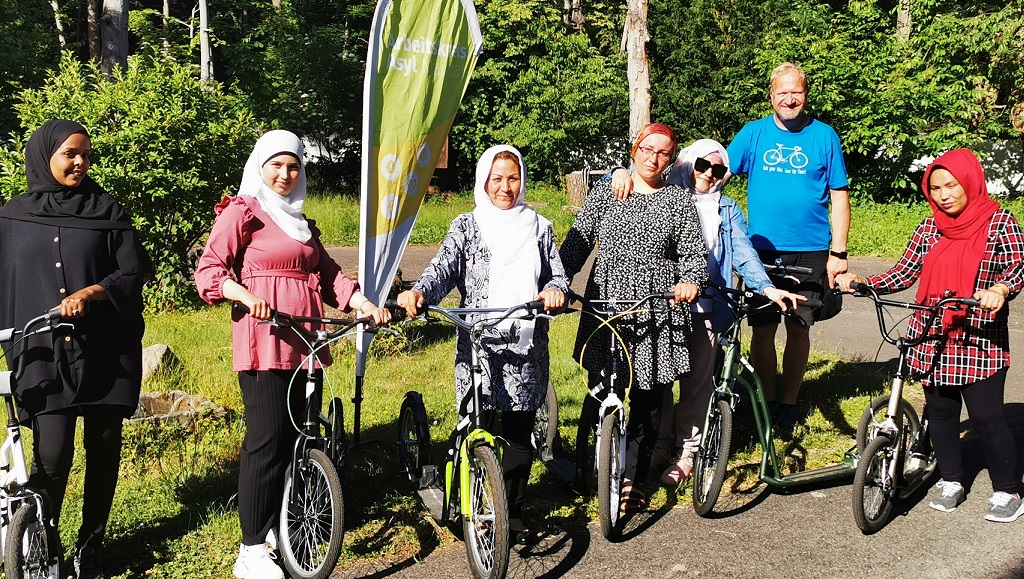 Im ersten Schritt übten die Teilnehmerinnen zunächst auf einem Roller das Gleichgewicht zu halten, um sich dann in Phase zwei an Fahrräder heranzuwagen. „Uns mag die Fertigkeit, Fahrradfahren zu können, banal erscheinen, weil wir das in der Regel im Kindesalter lernen“, so Yasmin Schilling, Beauftragte für Chancengleichheit am Arbeitsmarkt (BCA) im KCA. In vielen Regionen der Welt seien Frauen allerdings auch hierbei systematischer Diskriminierung ausgesetzt, daher stelle dieses Angebot eine reale Befreiung für Betroffene dar. „Leistungsbezieherinnen mit Migrationshintergrund sind nach unserer Erfahrung häufig multipel benachteiligt“, erläutert Beate Langhammer, Vorstandsvorsitzende des KCA, die den Fahrradkurs nicht zuletzt begrüßt, weil dieser „Selbstbewusstsein stiftet und die Frauen in ihrem Handeln bestärkt. Sie erzielen Erfolge, die sie auf andere Lebensbereiche ausweiten können!“