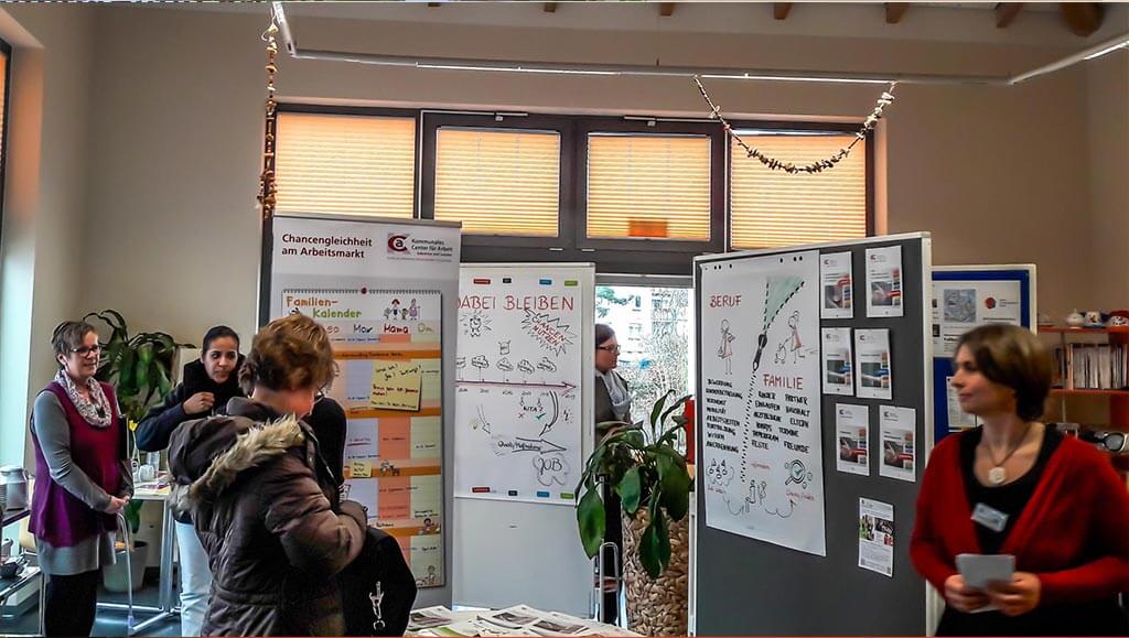 Wer Arbeitslosengeld II beziehe und ein Kleinkind betreue, der würde in der Regel erst nach dessen dritten vollendeten Lebensjahr wieder für den Arbeitsmarkt reaktiviert. „Das wäre in vielen Fällen schon früher möglich – und entspricht auch zunehmend der gesellschaftlichen Normalität.“ Daher geht das Jobcenter mit dieser Personengruppe schon frühzeitig ins Gespräch – auf freiwilliger Basis. Ein sehr willkommenes Forum bot dafür die 22. Hanauer Frauenwoche vom 3. bis zum 19. März 2017. Gemeinsam mit der Hanauer Familien- und Jugendberatung (FJB) sowie dem Mehrgenerationenhaus Fallbach organisierte das KCA eine Info-Veranstaltung unter dem Titel „Alleinerziehend – meine Zukunft im Blick“.