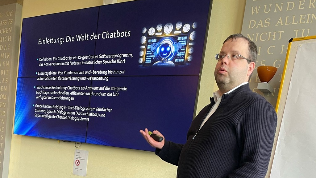 Mitte März traf sich die AG KJC auf Einladung des Kommunalen Centers für Arbeit (KCA) im Main-Kinzig-Kreis. Bei der zweitägigen Sitzung in Bad Soden-Salmünster stand unter anderem das Thema Digitalisierung im Fokus. Jewgenij Singer, Projektleiter Digitalisierung im KCA, referierte zu den technischen Voraussetzungen und Potenzialen eines sprachbasierten, KI-gestützten Chatbots. Gemeinsam mit anderen Fachleuten aus der Jobcenter-Welt arbeitet er am Konzept einer weitreichenden Lösung: „Menschen im Leistungsbezug werden in Zukunft direkt mit dem Chatbot telefonieren und dort ihre Fragen und Anliegen vortragen können. Der Chatbot agiert interaktiv, verfügt über Schnittstellen in alle relevanten Systeme und trainiert sich dank Künstlicher Intelligenz stetig selbstständig weiter“, skizziert Singer die Vision. Er schränkt aber ein, dass es noch ein bis zwei Jahre dauern könne, bis die Lösung startreif sei.