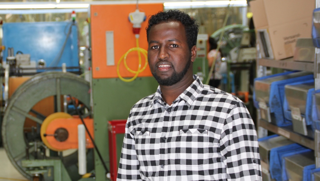 Ein Wort fällt immer wieder, wenn Ahmed Suber seinen Werdegang beschreibt: Kämpfen. Der junge Somalier lächelt als er schildert, wie er sich durchgekämpft hat. Wie er als Minderjähriger nach Deutschland floh und hier nach diversen Zwischenstationen im Main-Kinzig-Kreis seine Heimat fand. Der Weg in den Arbeitsmarkt war ebenso steinig. Vieles hat der 23-Jährige ausprobiert – er war bei einem Heizungsbauer und in einer Fachfirma für Prothesen. Dann die einmalige Chance: Seine Arbeitsvermittlerin beim Jobcenter des Kommunalen Centers für Arbeit (KCA) vermittelte ihn in ein Praktikum bei der Veritas AG in Gelnhausen. Der weltweit tätige Automobilzulieferer ist Entwicklungspartner der Automobilindustrie mit führender Werkstoff-und Systemkompetenz für das Fluid-, Thermo-und Dichtungsmanagement von Fahrzeugen. „Herr Suber hat uns mit seiner offenen und ehrgeizigen Persönlichkeit vom ersten Tag an überzeugt“, bestätigt Anita Nieder von der Veritas-Personalentwicklung. Nachdem er sich im Praktikum bewährt hatte, absolvierte der Wahl-Freigerichter erfolgreich die Ausbildung zum Maschinen- und Anlagenführer. Jetzt hat ihn Veritas in unbefristeter Festanstellung übernommen. Der zweifache Vater sprüht vor Stolz: „Ich möchte, dass meine beiden Töchter gut leben können. Das geht nur, wenn ich selber arbeite und Geld verdiene. Dafür habe ich mich angestrengt und gekämpft.“ Mit seinem freundlichen und aufgeschlossenen Wesen fand Suber rasch Anschluss bei den restlichen Azubis.
